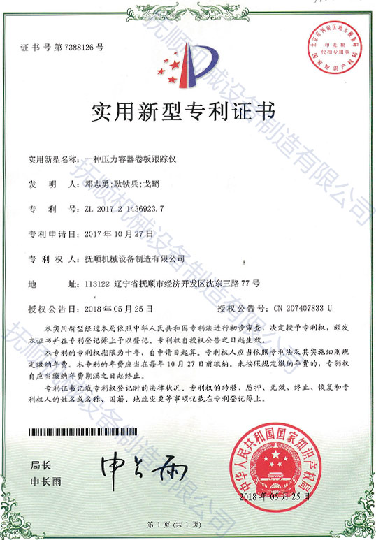 实用新型 一种压力容器卷板跟踪仪