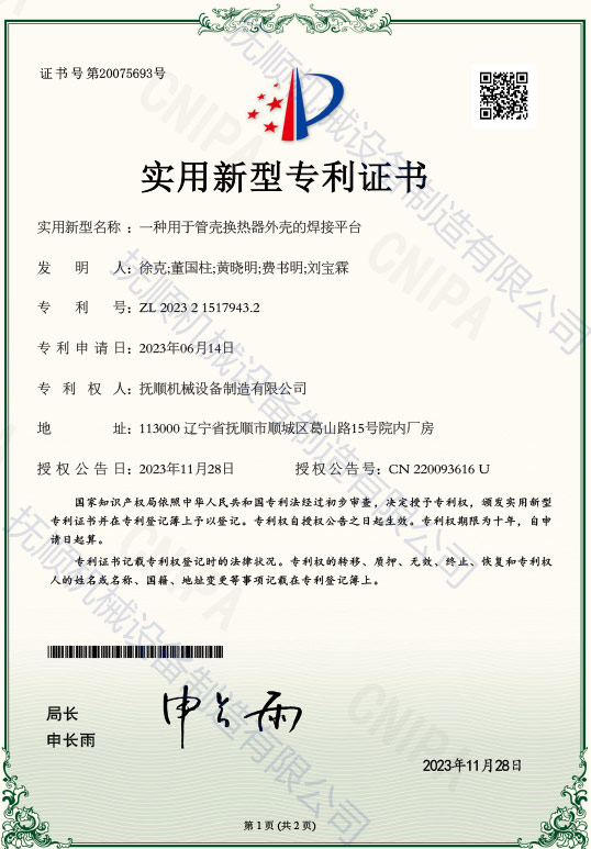 实用新型 一种用于管壳换热器外壳的焊接平台