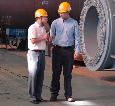 2008年4月25日上午,武环设计院副总工程师徐才福、刘佑义专程来公司就产品合作事宜进行实地考察。武环设计院是国内知名的具有独立研发能力和自主产权的综合性设计院。此次到公司实地考察的主要目的是与公司在高端产品制造方面进行合作。总经理徐克,总工程师范兆辉及生产、经营系统负责人员参加会见。在会见仪式上,总经理徐克对客人在百忙之中莅临公司表示热烈的欢迎。同时,向客人全面介绍了公司的发展历程,经营状况、产